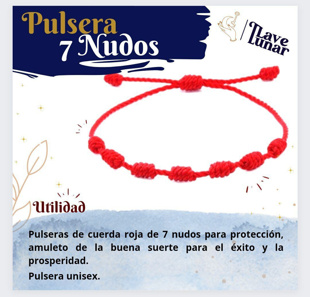 La pulsera de 7 nudos es muy popular en el mundo espiritual y esotérico, especialmente en tradiciones como la Kabbalah y prácticas energéticas de protección.