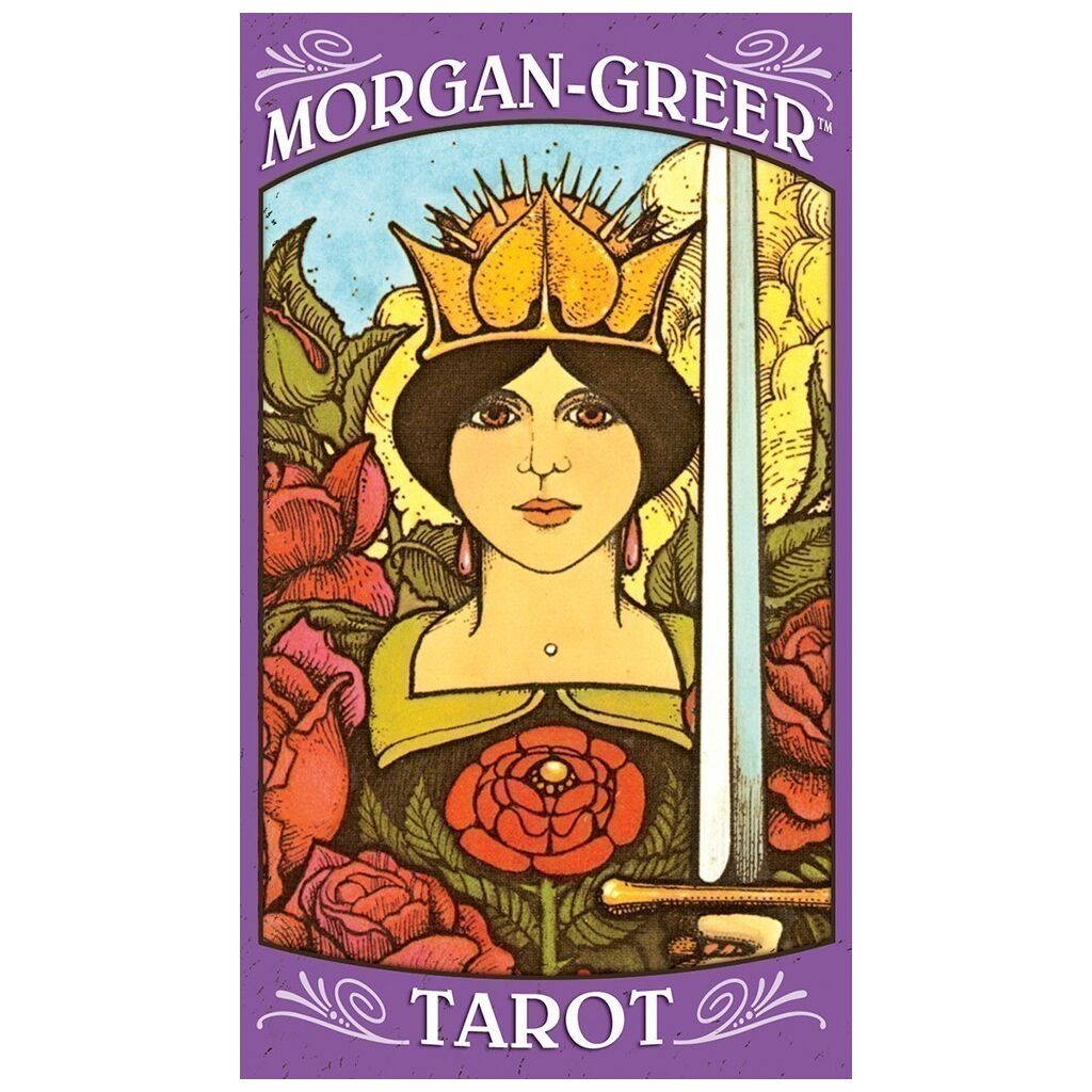 Basada en la estructura del Tarot Rider-Waite, esta baraja singularmente expresiva presenta imágenes mágicas en colores profundos y saturados. La baraja de 78 cartas sin borde permite apreciar los detalles de la escenografía y el simbolismo del tarot desde una perspectiva cercana e íntima. El Tarot Morgan-Greer sumerge al lector en su evocadora obra de arte. Al desplegarse, las escenas completas en las cartas sin borde crean una imagen hermosa.